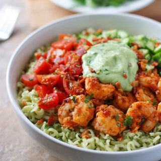 We’re finally emerging from the season where rich and ultra-comfy foods keep us fueled (and sane), but that doesn’t mean we can’t still take comfort in a big ramen noodle bowl full of shrimp, veggie, and guacamole goodness.
