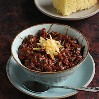 Between the chilis, the spices, the hint of bacon, and the super-savory-beefy mushrooms (which replaced 1/4th of the meat normally called for), this chili really hit the spot — flavorful and perfectly seasoned.