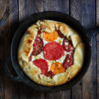 With tomatoes already plentiful, and sweet corn just starting to come in, this grilled tomato and corn galette shouts Summer! in the very best of ways.