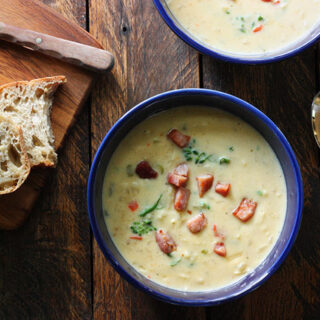 As you would expect of a soup addict, soup has been occupying my foodie thoughts for the last several weeks. Although the chilly, leaf-blowing, soup-perfect autumn weather hasn’t arrived just yet — it’s expected to hit 82°F today, hardly steaming-bowl weather (I hear it’s similarly beautiful throughout the U.S.) — the quickly darkening evenings have left me craving comfort food.