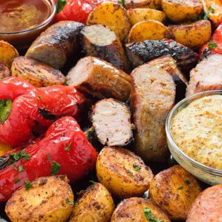 Perfect for fall grilling, game day cookouts, and even tailgating, grilled sausages, peppers, and potatoes are a tasty way to enjoy outdoor cooking and smoky, earthy flavors. Easy to prepare, easy to grill, this is a crowd pleasing meal for sure!