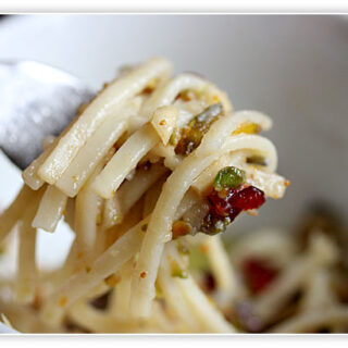 SoupAddict, one year later and we're still eating Beggar's Linguine. The flexibility inherent in this recipe is nearly miraculous: any nuts, any fruit, any pasta. Imagination seems to be the only limiting factor. No orange peel? I had TJ's orange-flavored dried cranberries, which were fabulous. Yes, fresh and hot is best, but even cold and/or reheated, this dish keeps on giving. Thank you so much, again, for putting it out there.