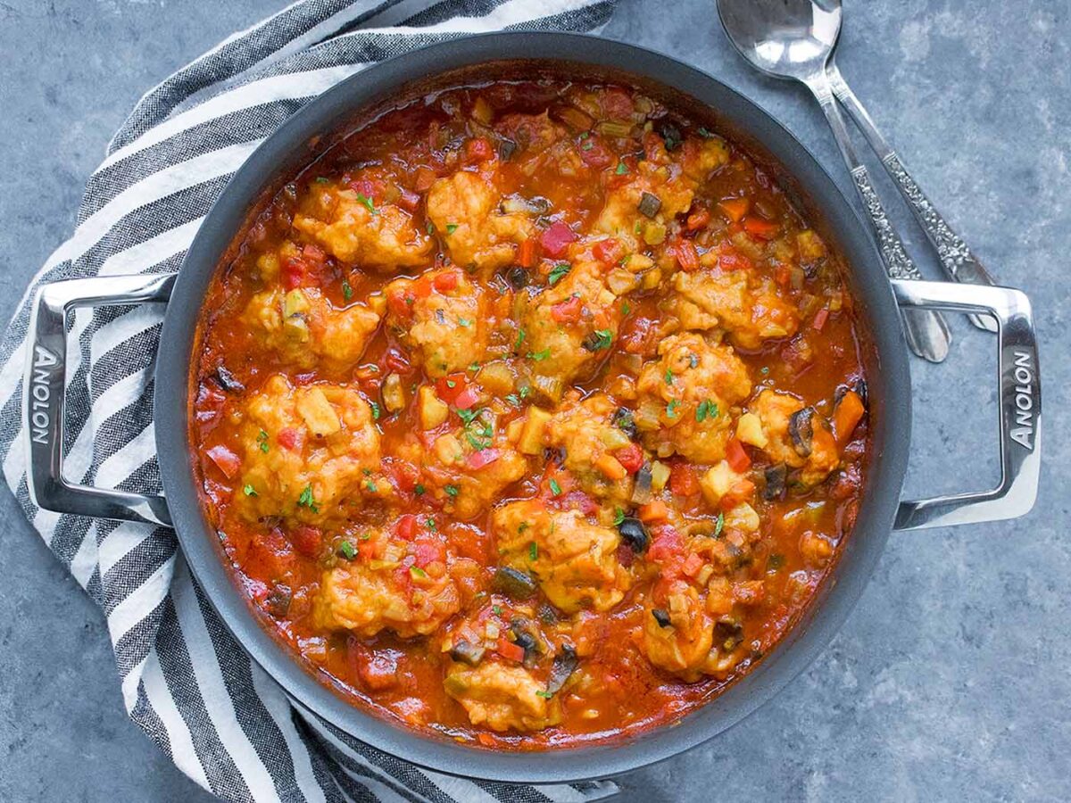 I was making my chicken and dumplings one day when, hovering over the pot, I realized that it would also be amazing as a vegetable soup. Cooked in an umami-leveled-up broth, the homemade vegan dumplings add so much character and flavor to this Vegetable Dumpling Soup.