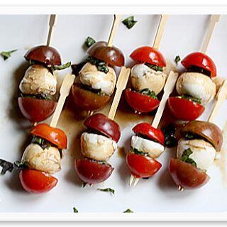 Elegant drizzlies or not, the peeps will love the little caprese bites of heaven. It’s summer on a stick.