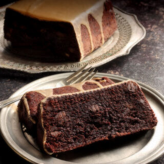 Chocolate Chocolate Chip Cake with Kahlua Icing