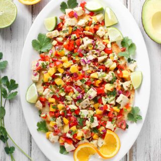 It’s time to break out the grill! A light summer dinner goes quickly to the table with grilled chicken salsa flatbreads! Brush your favorite flatbread with a light citrus marinade, toast it right on the grill while the chicken cooks, then top with the chicken and a super easy make-ahead mango salsa.