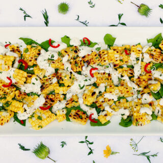 Grilled Corn Strips Salad with Tarragon Creme