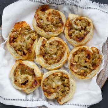 Give your Thanksgiving leftovers a delicious makeover with Leftover Stuffing Pinwheels! Flaky puff pastry encases a flavorful filling of savory stuffing, creamy brie, sharp cheddar, and a hint of sweetness from fig spread. They’re easy to assemble — thanks to store-bought puff pastry — and bake up into beautiful golden spirals, making a crowd-pleasing side dish for soups, salads, or hearty mains. Whether you’re hosting a post-holiday gathering or just craving something cozy, these pinwheels are a must-try!