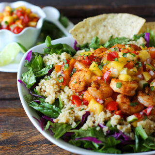 Spicy Shrimp with Sweet and Zesty Mango Salsa Cinco De Mayo Bowls