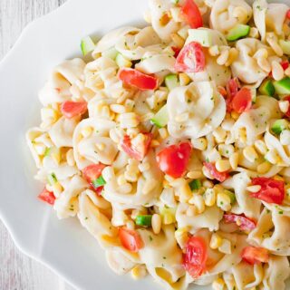 For vegetarians, the recipe is already suitable. For vegans, substitute the dairy in the dressing with vegan buttermilk and use dairy-free yogurt. Make sure your tortellini is not stuffed with cheese or meat (you’ll probably have to cook up dried tortellini pasta – it’s all good!).