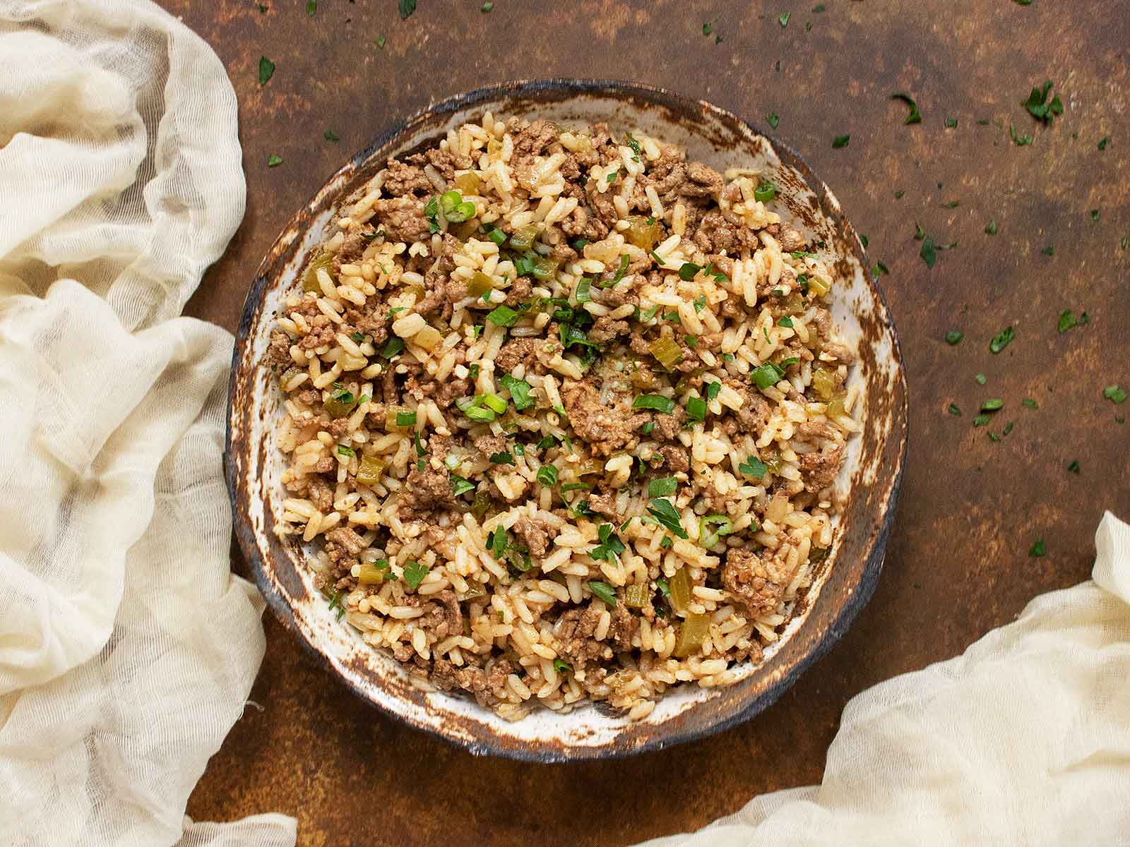 Easy Dirty Rice is a classic Cajun dish made weeknight-friendly with ground beef, Italian sausage, and the Holy Trinity of Southern cooking. It all comes together in just 30 minutes.