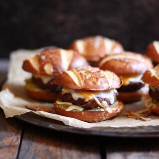 And how about those pretzel slider buns? Adorbs. Some stores (like mine) don’t carry reliable stocks of mini buns, so I have to take what I can get for my veggie burger sliders. Believe me, it’s all good.