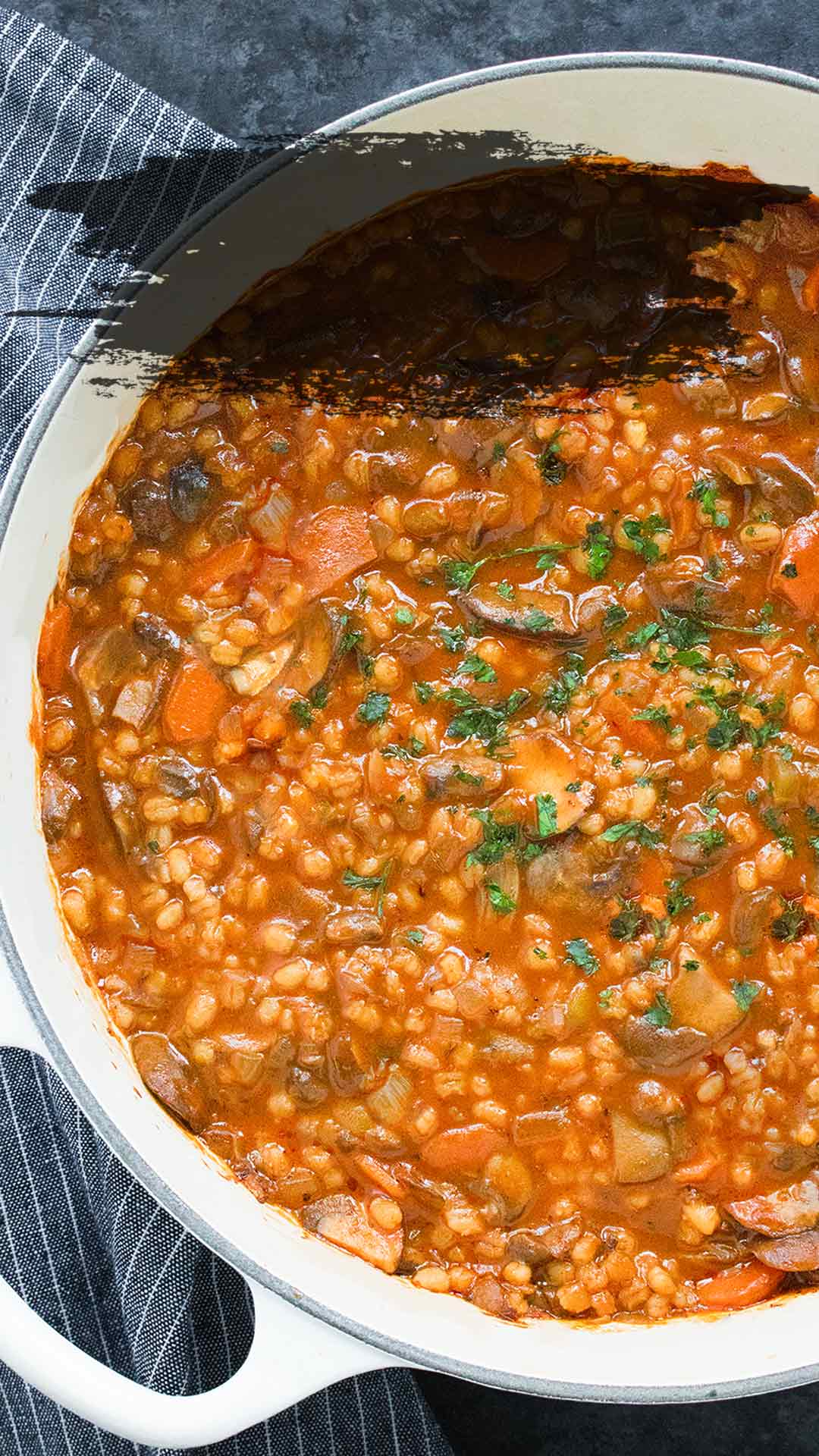 This main-dish-worthy soup features meaty mushrooms, savory veggies, and hunger-crushing barley. Nourishing and umami-loaded – perfect for the Blue Zones diet!