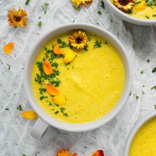 A gorgeous, vibrant summer soup, full of bright and sunny flavors, chilled Yellow Gazpacho will become your very favorite summer soup. Vegan, dairy-free, and gluten-free, this light soup is the perfect summer appetizer for brunch or a light lunch with a side salad.